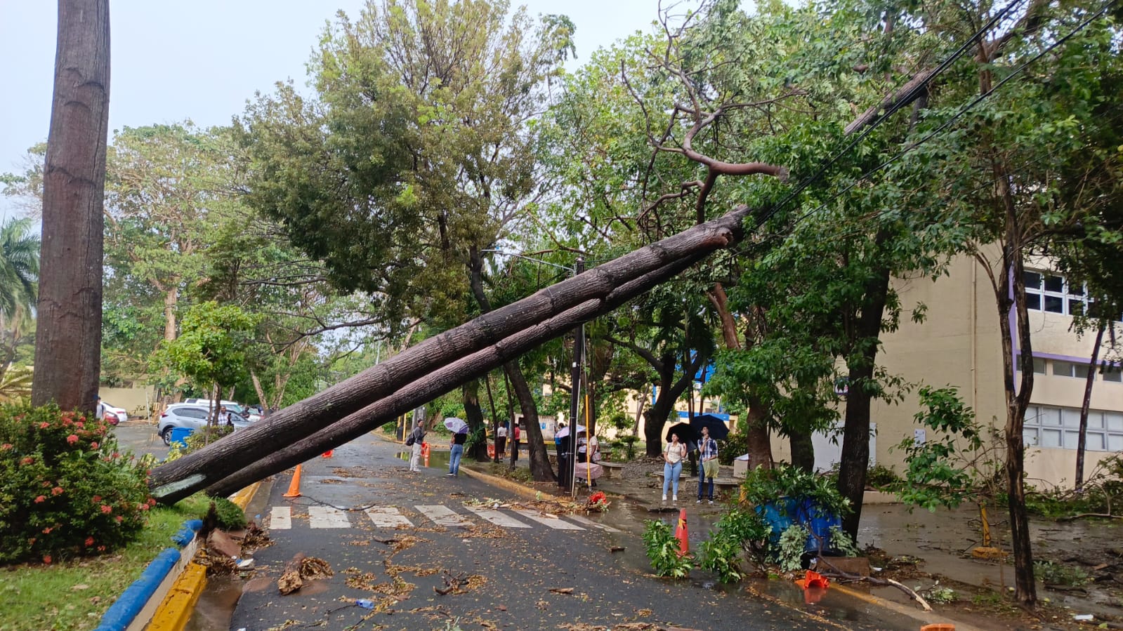 - En la Universidad Autónoma de Santo Domingo (UASD), estudiantes vivieron momentos de tensión luego de que varios árboles colapsaran dentro del campus, debido a la fuerza del viento, generando preocupación entre la comunidad universitaria. Situaciones similares se registraron en la avenida Delgado, esquina Independencia, y en la calle Santiago, cerca del Palacio Nacional, donde ciudadanos reportaron obstrucciones por árboles caídos.