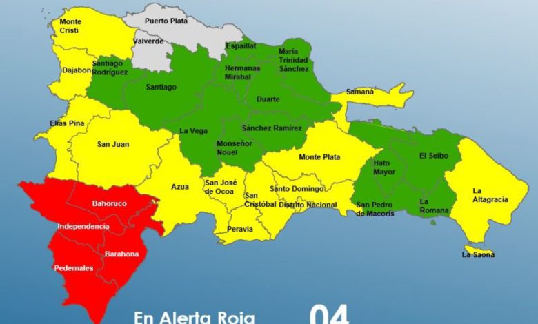De esta forma, en alerta amarilla se sitúan los territorios de: San José de Ocoa, Samaná, Dajabón, Azua, Monte Plata, Elías Piña, Peravia, La Altagracia, San Juan, Montecristi, Santo Domingo, San Cristóbal y el Distrito Nacional.